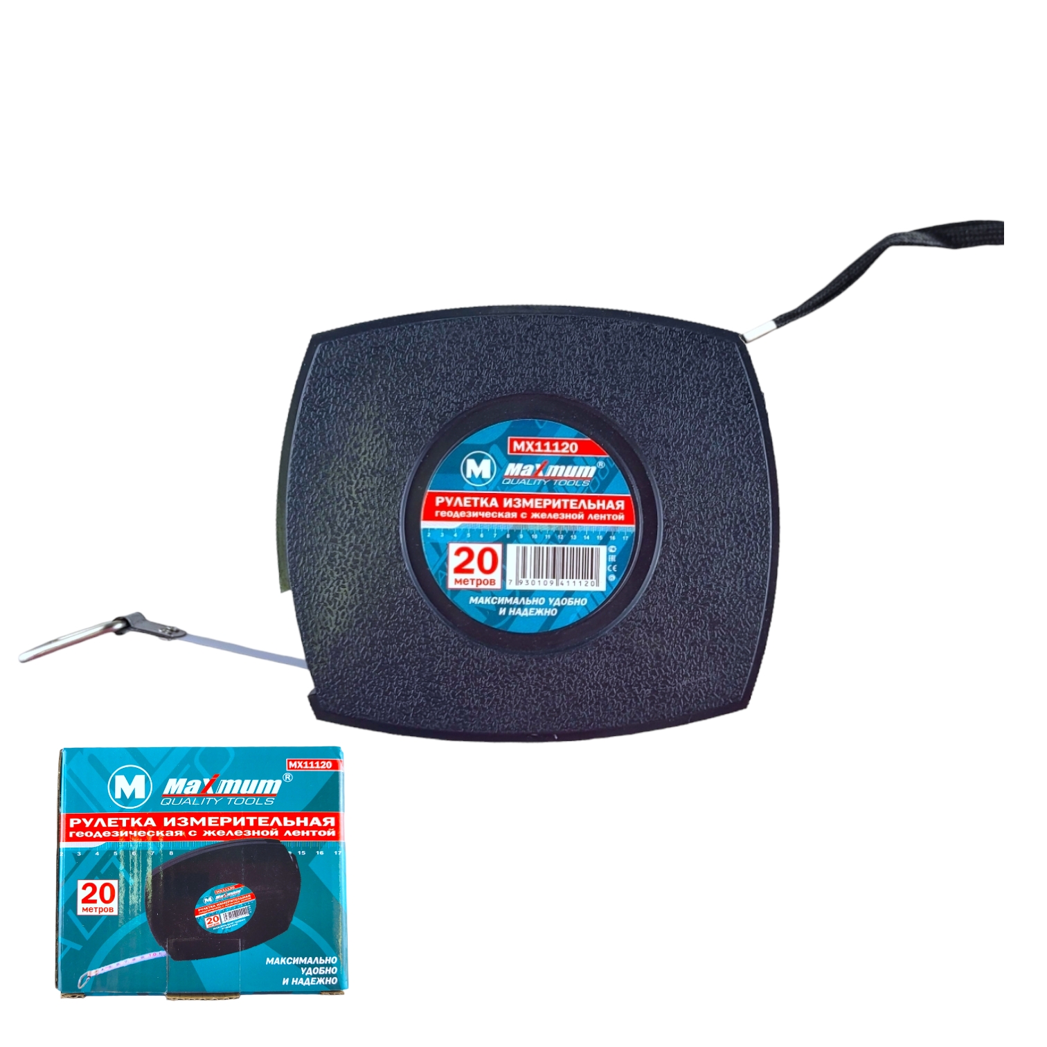 Рулетка геодезическая с железной лентой, 20 м от бренда Maximum состоит из противоударного закрытого корпуса и встроенного барабана с намотанной на него мерной лентой. Простая, надёжная конструкция защищена ребристым резиновым элементом, предохраняющим корпус при падении.