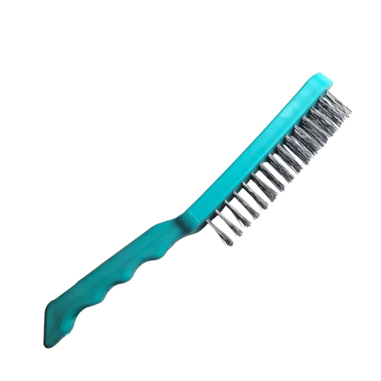 Щетка ручная с металлическим ворсом 30 мм в 6 рядом от "Maximum Quality Tools" изготовлена из стальной проволоки и прочного ABS пластика. Анатомическая форма ручки дополнена отверстием для хранения. Длина щетки с металлической щетиной 14 см, ширина 4 см. Общая длина 27 см. Щётка отлично подойдёт для снятия лакокрасочных покрытий с изделий из металла и дерева, а также для зачистки поверхностей перед и после сварки.