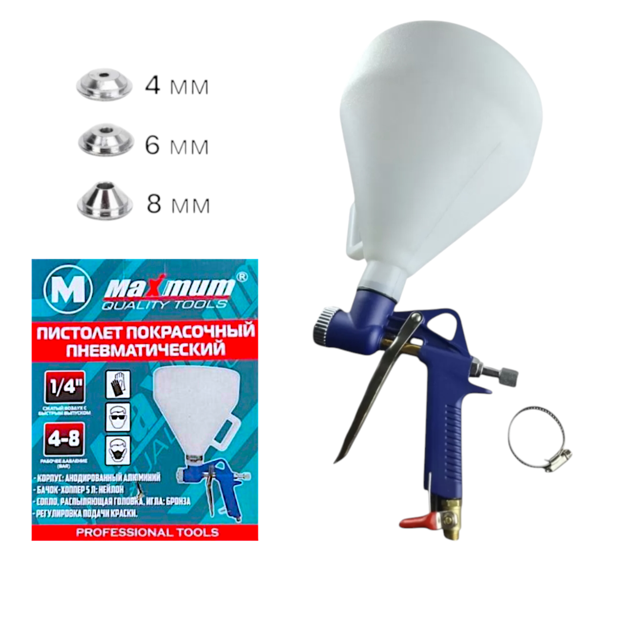 Пистолет-распылитель пневматический с верхним пластиковым бачком на 6 литров от Maximum Quality Tools используется в автомобильной, строительной и деревообрабатывающей промышленности. Давление воздуха 5-7 Bar. Краскопульт предназначен для нанесения лакокрасочных материалов на различные поверхности ровным гладким слоем. Инструмент обладает прочным, устойчивым к механическим повреждениям корпусом с удобной рукояткой. Распылитель краски выполнен из алюминиевого сплава, устойчивого к механическим повреждениям и токсичной среде.