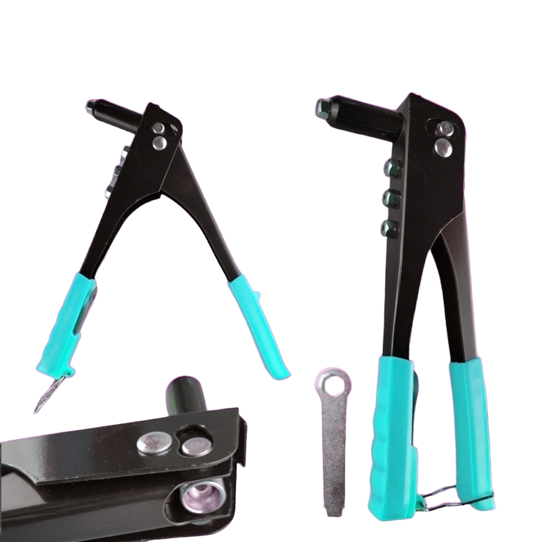 Ручной заклепочник укомплектован насадками для заклёпок разных диаметров.