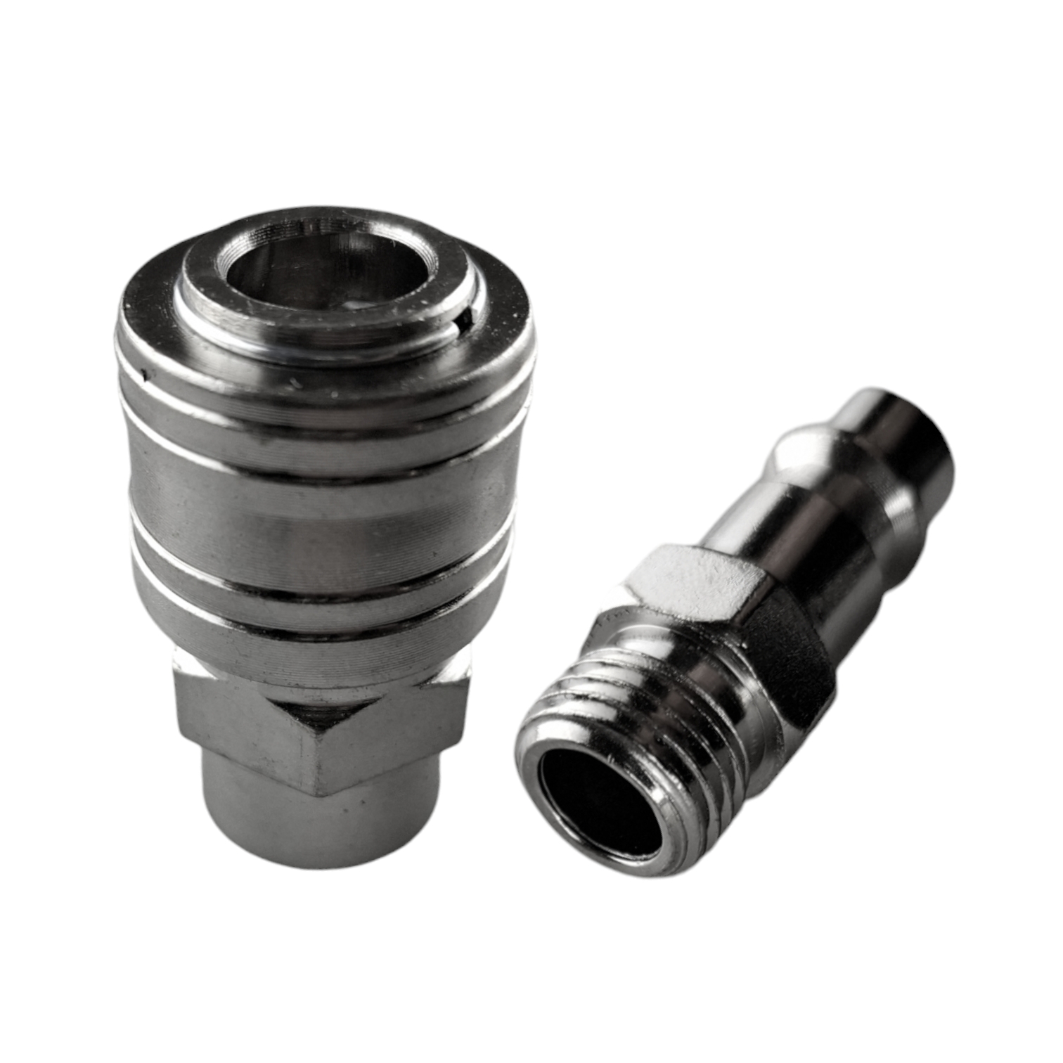 Набор быстроразъемных соединений для пневматических линий от "Maximum Quality Tools" выполнен из нержавеющей стали. Набор включает: