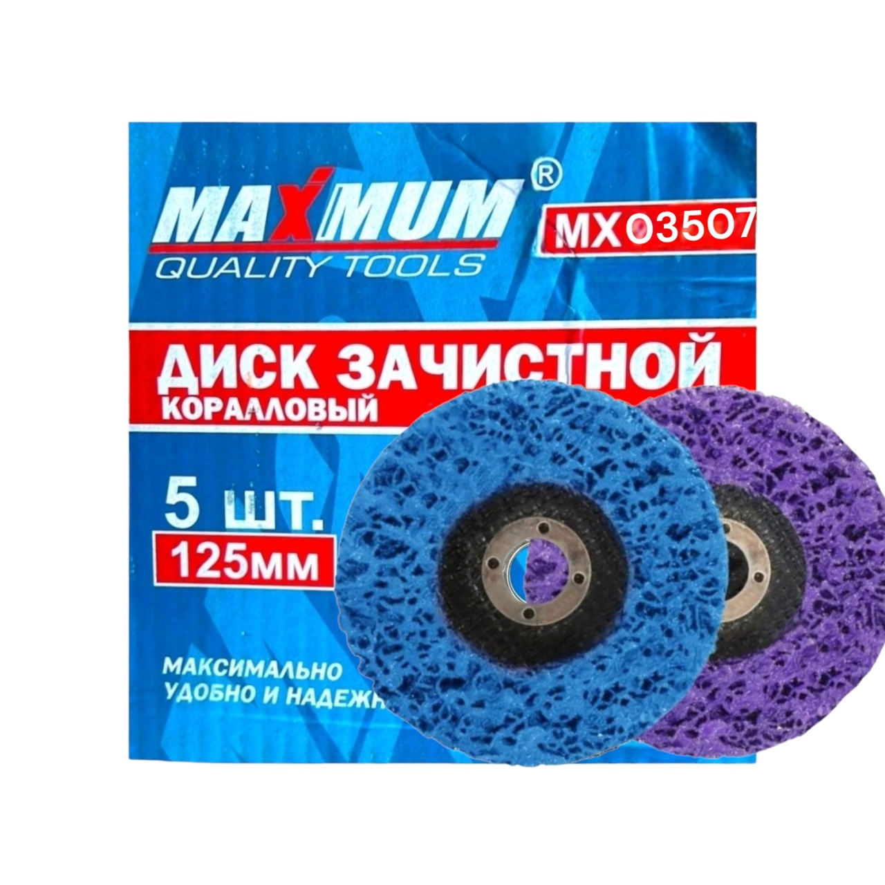 Круг коралловый 125 мм толщиной 15 мм средней жесткости от «MAXIMUM QUALITY TOOLS» — это отличное решение, если Вам необходимо подготовить поверхность к нанесению краски, грунтовки, лака, клея или зачистить сварочные швы.
