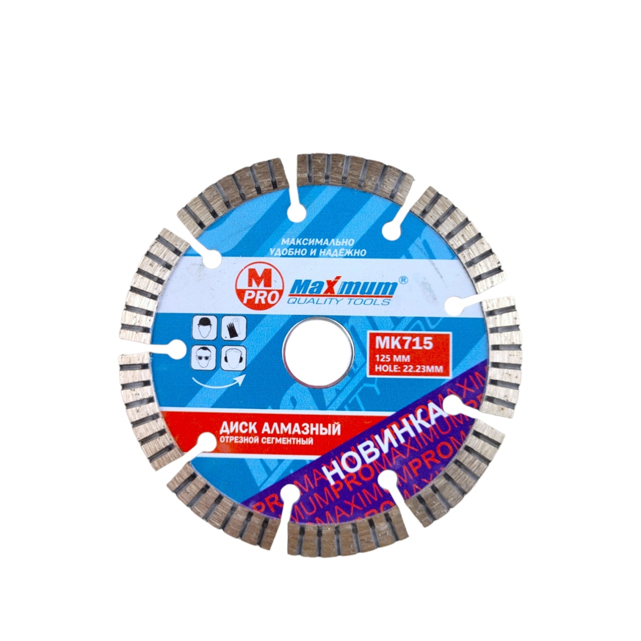 Сегментный алмазный диск по бетону 125 мм от "MAXIMUM QUALITY TOOLS" сочетает в себе лучшие качества дисков Turbo (скорость реза ) и Segment (повышенную износостойкость). Диск для УШМ 125 мм имеет посадочное место 22,23мм. Диск отрезной сегментированный 125 мм предназначен для сухой резки и отличается высокой скоростью и плавностью реза.