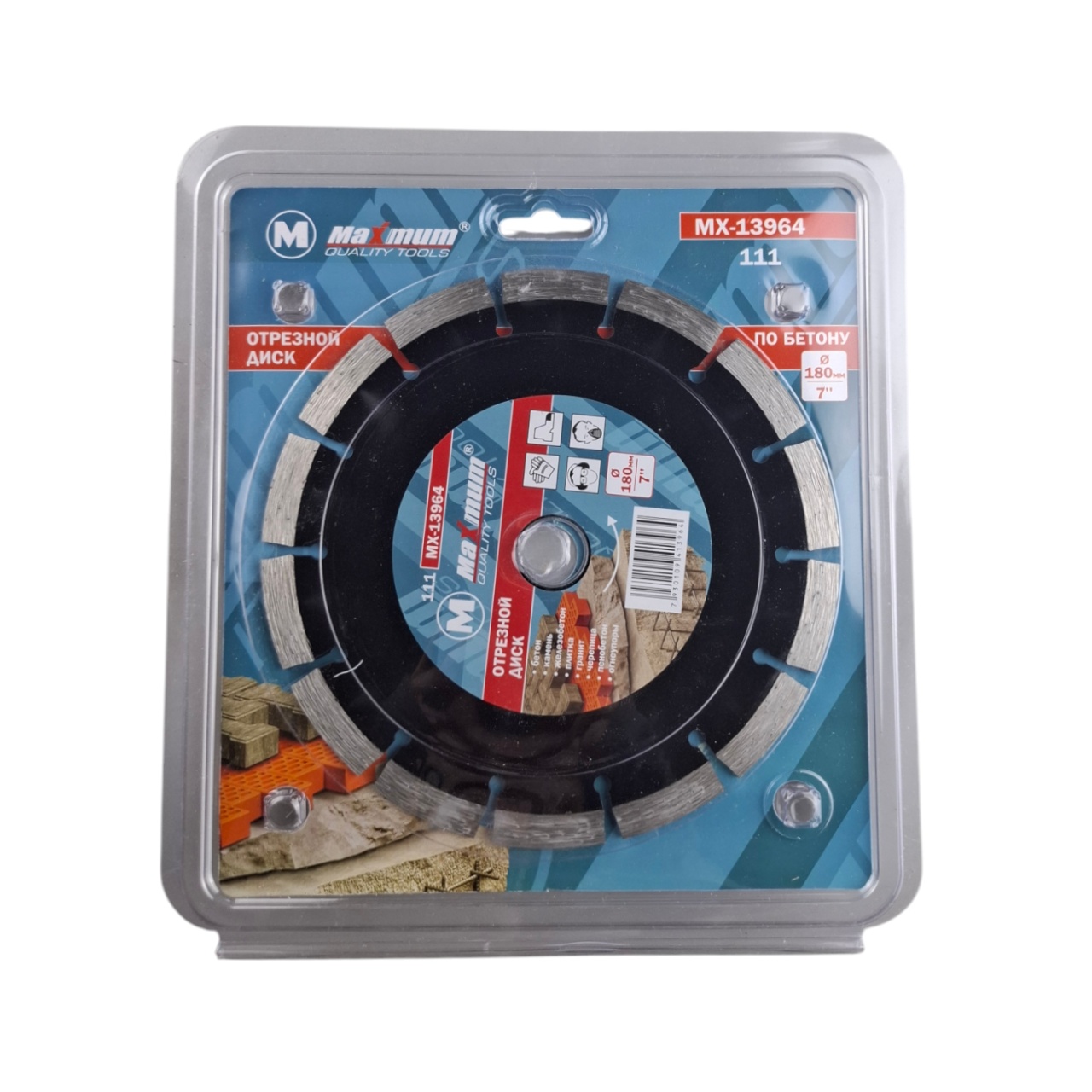 Надежный сегментный высокоскоростной диск 180 мм от бренда MAXIMUM создан специально для сухой резки бетона болгаркой (УШМ).