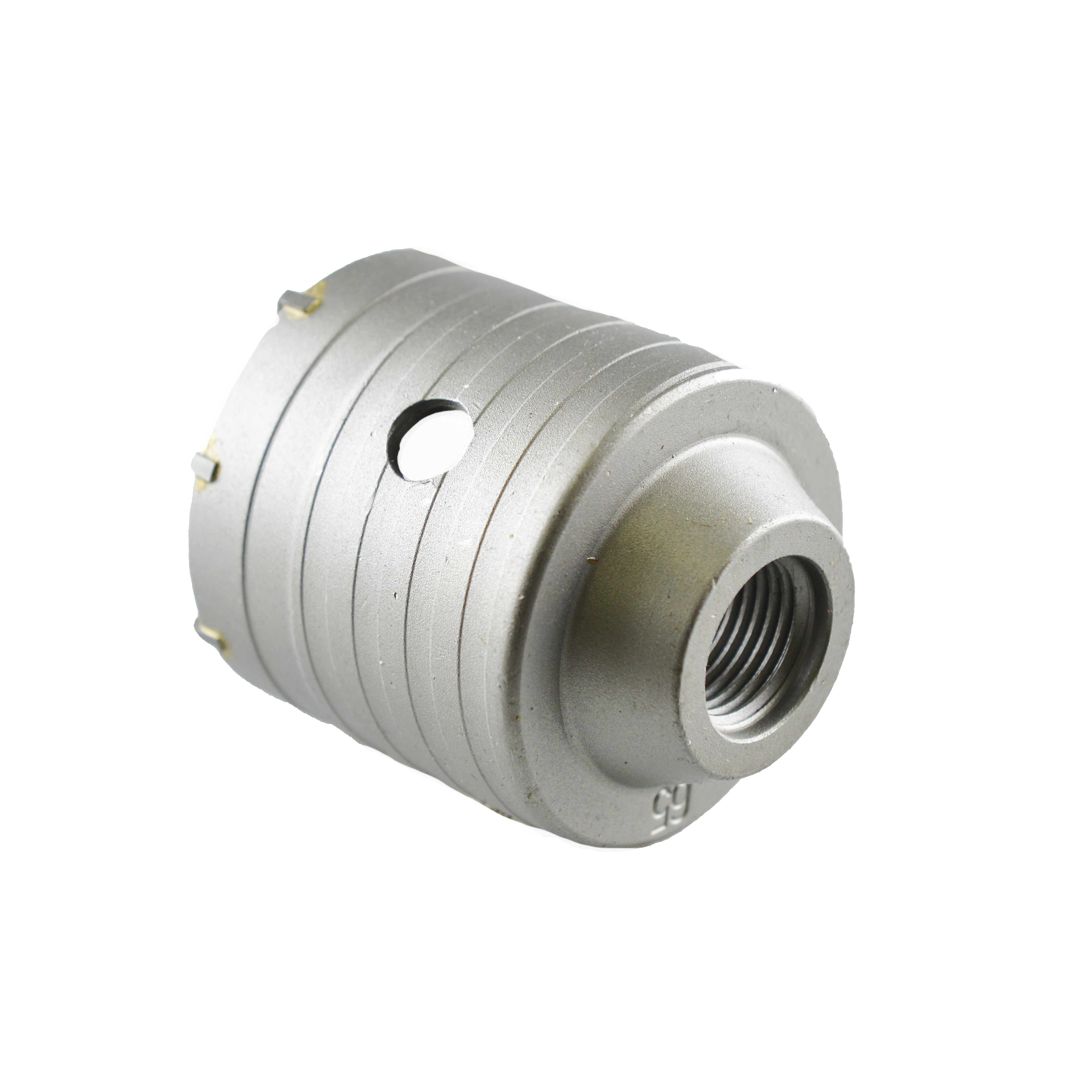 Прочная стальная коронка cо специальными твердосплавными напайками предназначена для работы с бетоном, известняком, камнем, кирпичом, клинкером.