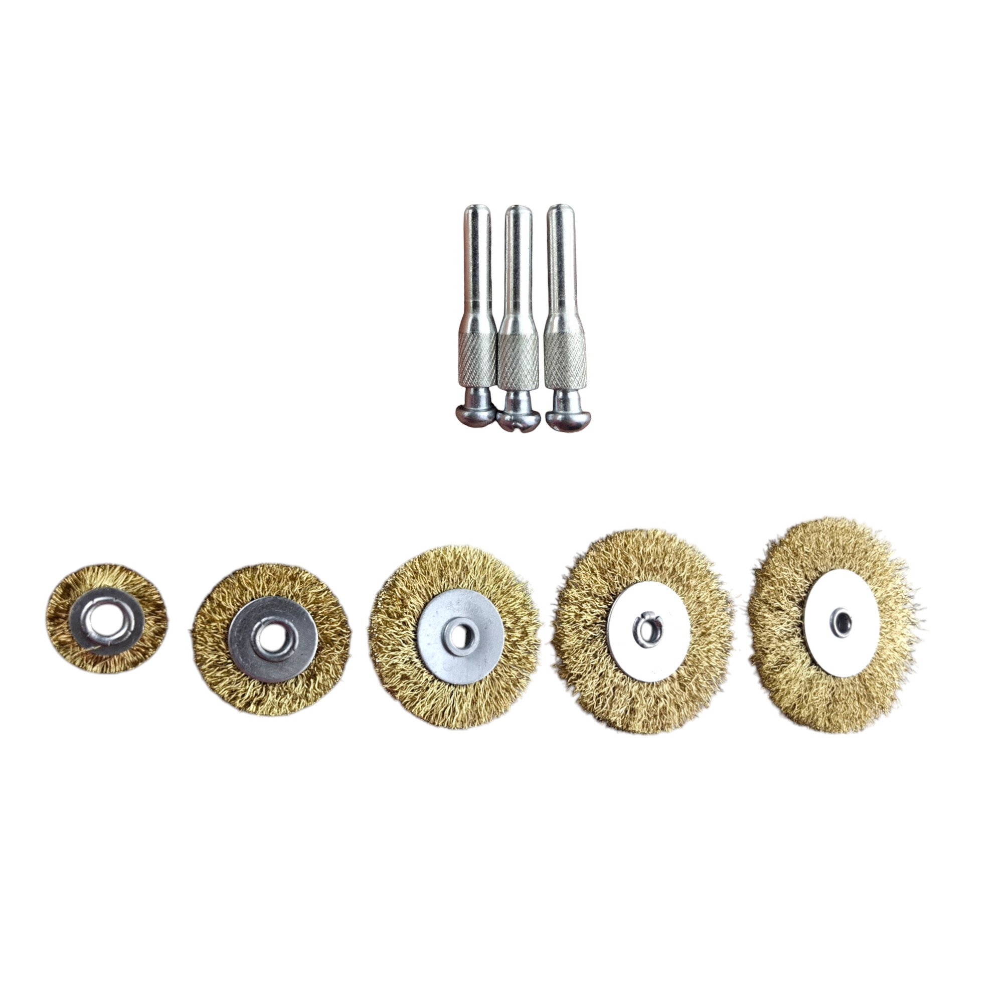 В комплекте 5 щеток разного диаметра (25 мм, 35 мм, 50 мм, 75 мм) для обработки как небольших участков, так и обширных поверхностей.