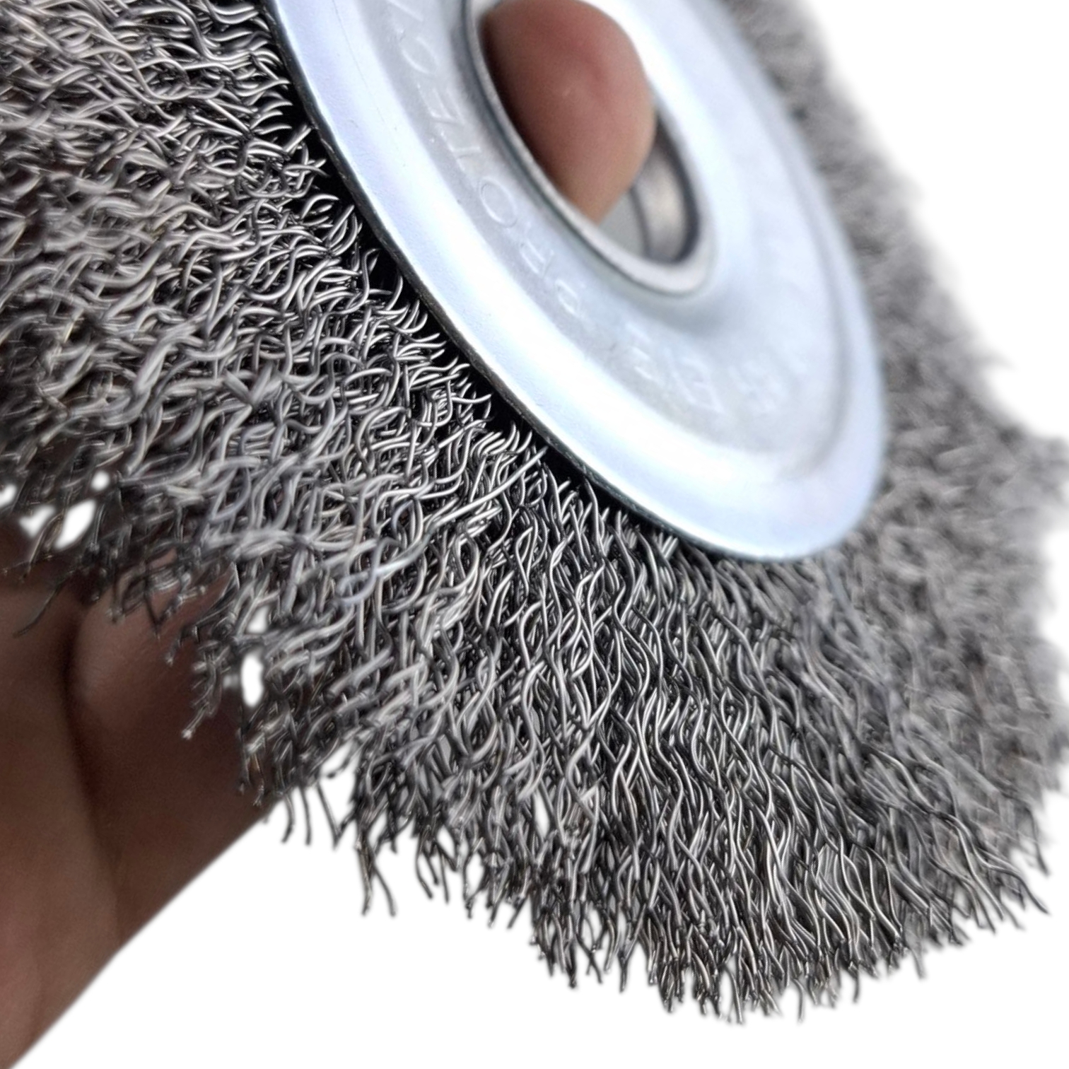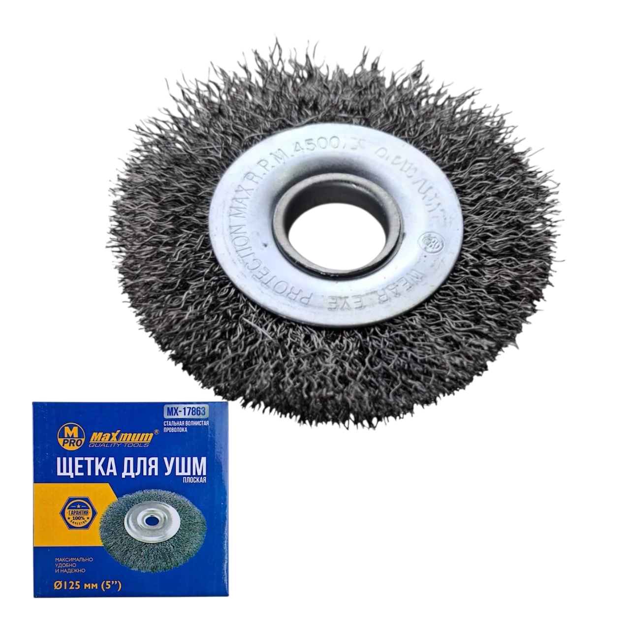 Корщетка по металлу 125 мм для болгарки (УШМ) — эффективный инструмент для очистки поверхностей. Эта насадка с посадочным диаметром 22,2 мм идеально подходит для зачистки металла от ржавчины, удаления старой краски, окалины и загрязнений, а также для обработки сварных швов. Благодаря плоской форме щетка для грубой очистки обеспечивает доступ в углы, пазы и сложные участки. Изготовлена из крученой в жгуты проволоки из высокоуглеродистой стали, устойчивой к коррозии и рассчитанной на скорость до 11000 об/мин. Эргономичная конструкция снижает вибрацию и повышает эффективность работы.