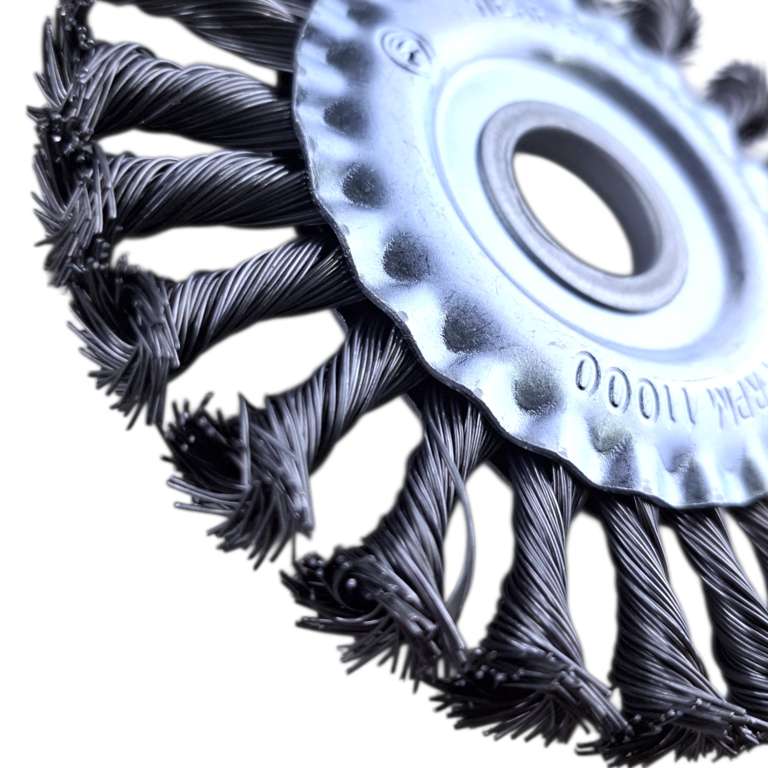 Щетка для УШМ (болгарки) 100 мм от "Maximum" создана для грубой очистки металла.