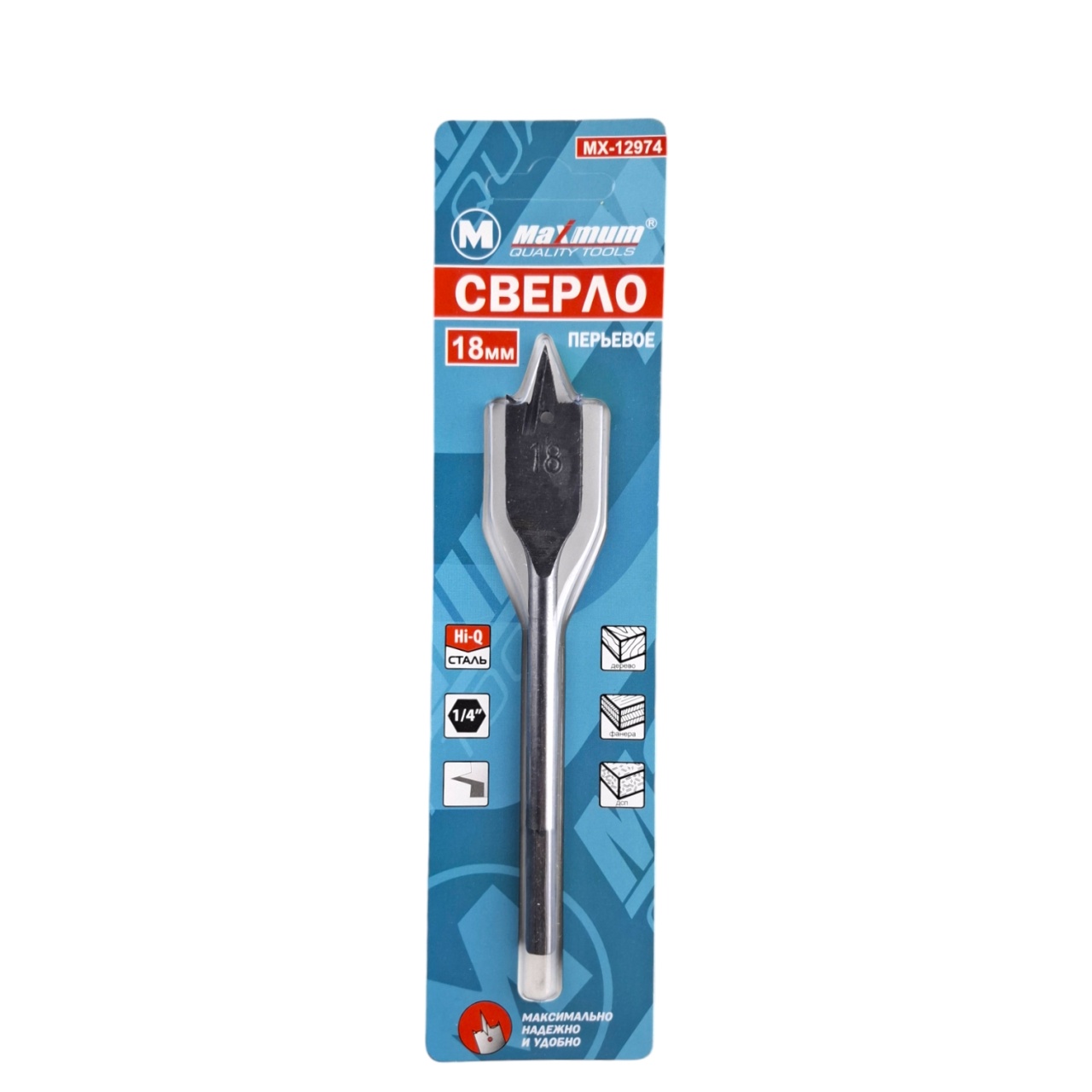 Сверло перьевое по дереву от бренда Maximum произведено из качественной инструментальной стали и предназначено для выполнения сквозных/ глухих отверстий в заготовках из мягких и твердых пород древесины. Применять сверло по дереву можно в комплекте с электрической дрелью и шуруповертом. Шестигранный хвостовик подходит для профессиональных инструментов с быстросъемным адаптером.