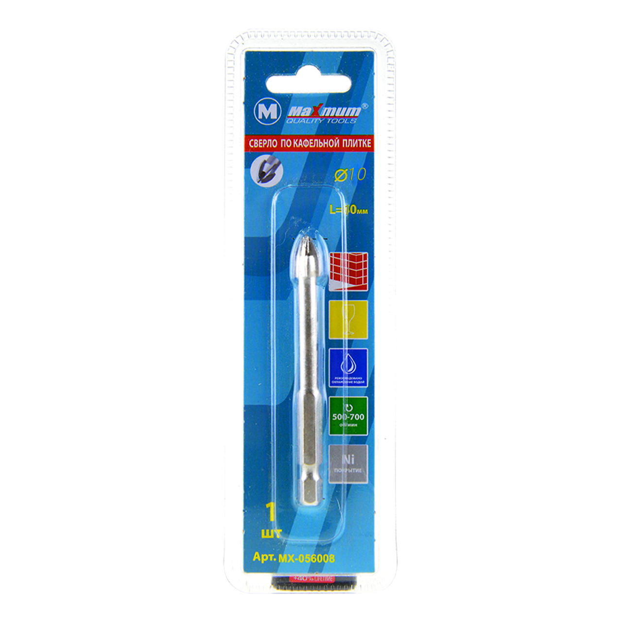 Сверло 10 мм+ от Maximum подходит для работы с керамической плиткой, керамогранитом и стеклом. Наконечник квадро изготовлен из карбид-вольфрамового сплава с никелевым покрытием, что обеспечивает режущим лезвиям максимальную производительность, точность в работе и долговечность.