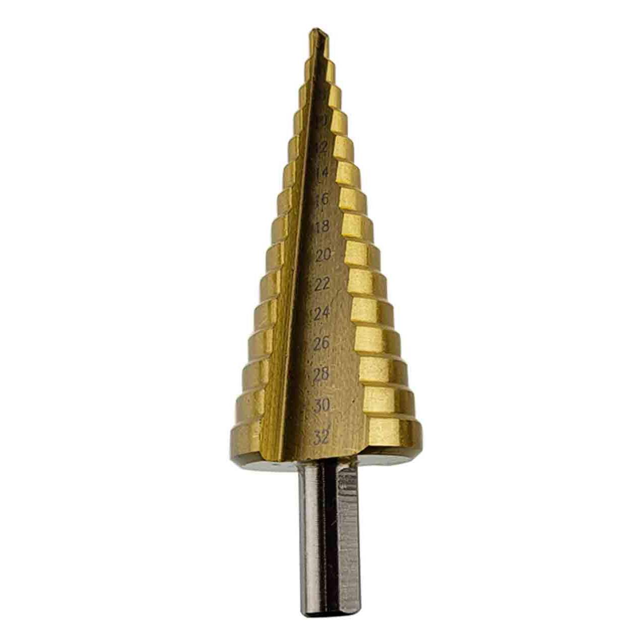 Сверло по металлу имеет ступенчатую конструкцию 4 - 32 мм и оборудованная шестигранным хвостовиком. Сверло HSS покрыто износостойким титановым покрытием и способно заменить целый набор обычных сверл.