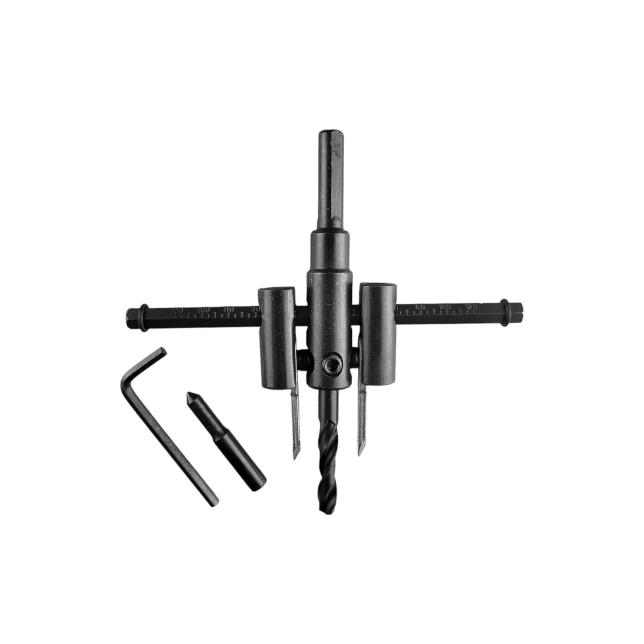 Твердосплавные режущие кромки сверла по дереву обеспечивают ровный рез. Режущие пластины перемещаются по горизонтальной направляющей относительно сверла-сердечника на расстояние до 120 мм. В комплект входит шестигранный ключ и точечное направляющее сверло.